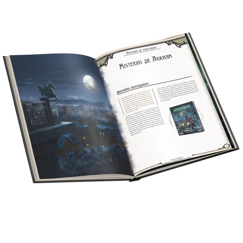 Misterios de Arkham es una antología de tres casos para Arkham Horror: El juego de rol; es necesario el manual básico para poder jugar.