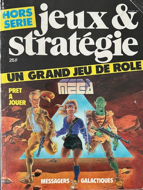 Respecto a juegos de principios de los 80 que fueron básicos, aquí tenéis el primer juego de rol francés, MEGA, "Messagers Galactiques" (Mensajeros Galácticos), publicado en la revista Jeux & Strategie en 1984 y diseñado por Michael Brassine y Didier Guisérix. En esencia, los jugadores interpretaban el papel de Agentes de la Asamblea Galáctica, un organismo dependiente de la Confederación Interplanetaria integrado por representantes de todas las formas de vida inteligentes que pueblan nuestro Universo. La Asamblea decide qué civilizaciones a punto de lograr el salto al espacio pueden pasar a formar parte de la Confederación. Y he aquí que nuestro momento, el de la Humanidad, ha llegado. ¿Merecemos formar parte de ella o somos potencialmente demasiado peligrosos para estas buenas gentes? Como Agentes de la Asamblea, se nos encomendarán una serie de misiones en un universo transdimensional donde viajaremos a través del tiempo a espacios y mundos paralelos ( no, no "para lelos") usando una estructura con forma de tetraedro como portal de entrada y, ¡atención, importante!, como salida... Así, un buen día estaremos resolviendo un entuerto en una civilización con tecnología ultra avanzada con rayos láser y replicantes, por ejemplo, y otro lo haremos entre señores feudales que cabalgan a lomos de lombrices voladoras, por ejemplo... Y todo ello para demostrar nuestra valía como raza y especie, y nuestro compromiso con esta Confederación Interplanetaria. Os sonarán campanas de juegos de todo tipo y pelaje más actuales. Normal, aquí casi todo está ya inventado.
