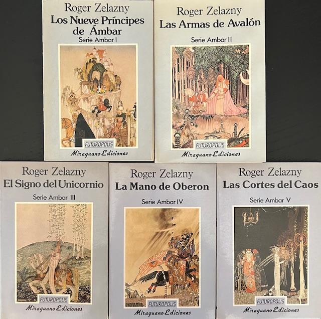 Ciclo completo de Los Nueve Príncipes de Ámbar de la fantástica colección Futurópolis de la editorial Miraguano. El ciclo de Ámbar es obra de Roger Zelazny, uno de los grandes de la fantasía del siglo XX con otras obras memorables como Dilvish el Maldito, y representa uno de los mejores exponentes del género.
