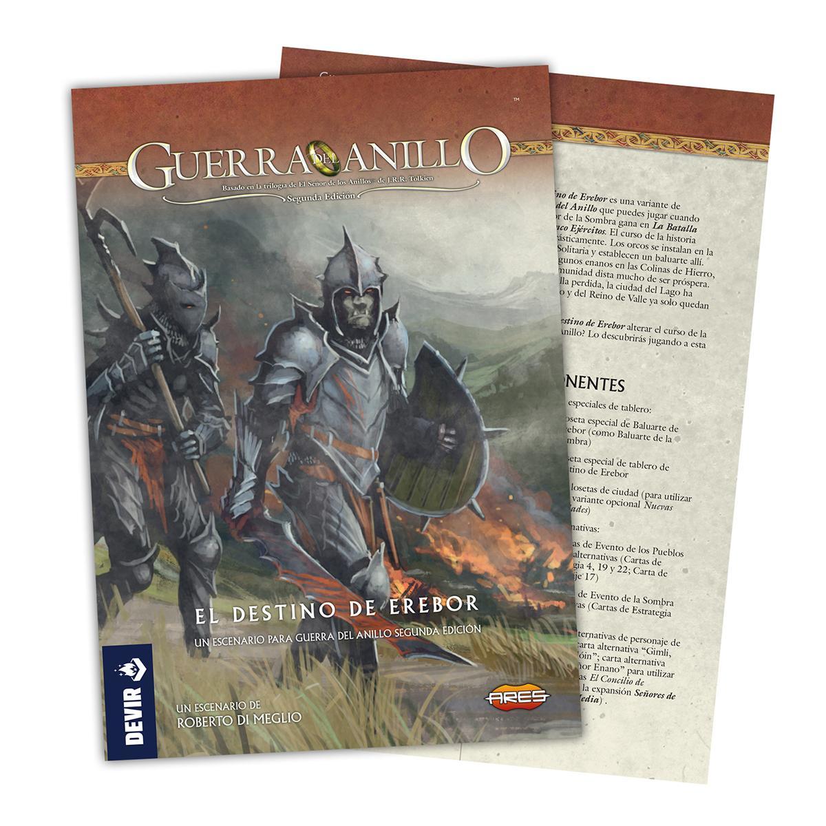 El Destino de Erebor es la tercera expansión del famoso juego de estrategia La Guerra del Anillo (segunda edición), basado en el universo de fantasía épica creado por el escritor J.R.R. Tolkien. Diseñado por Roberto Di Meglio, Marco Maggi y Francesco Nepitello, esta expansión propone un inicio alternativo al juego base, cosa que amplía las opciones de los jugadores y plantea todo un reto para los más experimentados. Para ello incluye losetas alternativas de mapa y nuevas cartas de personaje y de evento.