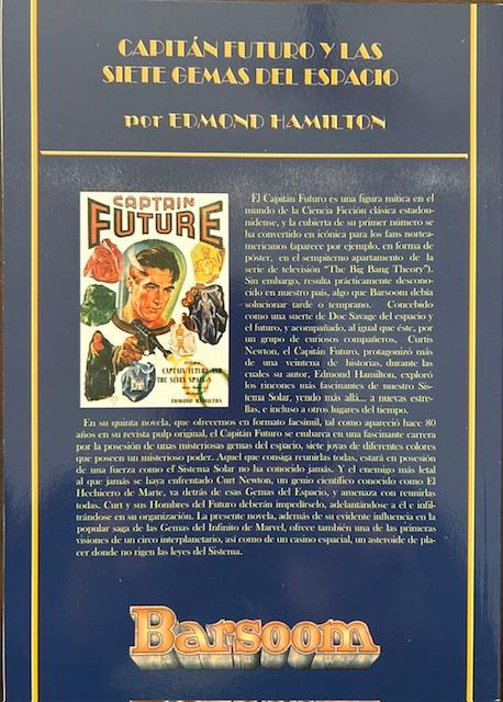 El Capitán Futuro es una figura mítica en el mundo de la Ciencia Ficción clásica estadounidense, y la cubierta de su primer número se ha convertido en icónica para los fans norteamericanos (aparece por ejemplo, en forma de póster, en el sempiterno apartamento de la serie de televisión “The Big Bang Theory”). Sin embargo, resulta prácticamente desconocido en nuestro país, algo que Barsoom debía solucionar tarde o temprano. Concebido como una suerte de Doc Savage del espacio y el futuro, y acompañado, al igual que éste, por un grupo de curiosos compañeros, Curtis Newton, el Capitán Futuro, protagonizó más de una veintena de historias, durante las cuales su autor, Edmond Hamilton, exploró los rincones más fascinantes de nuestro Sistema Solar, yendo más allá… a nuevas estrellas, e incluso a otros lugares del tiempo.
