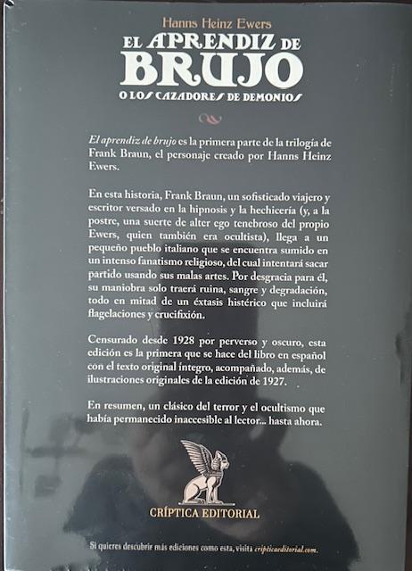 Publicado en 1909 y retirado prácticamente de la faz de la tierra en 1928, "El Aprendiz de Brujo" de Hanns Heinz Ewers (un libro clasificado en su época como «perverso») no ha visto jamás no solo una traducción al castellano, sino una que lo haga con su versión original, libre de censuras. Esta es la primera en español, e incluye el texto íntegro original.