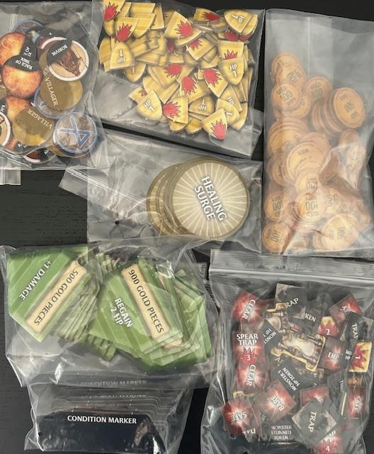 Cuando se revela una nueva ficha de mazmorra, normalmente hay un encuentro de algún tipo y se agregan nuevos monstruos contra los que luchar. Los monstruos asesinados recompensan a los jugadores con tesoros y puntos de experiencia, lo que les permite subir de nivel y aumentar sus habilidades durante el juego.