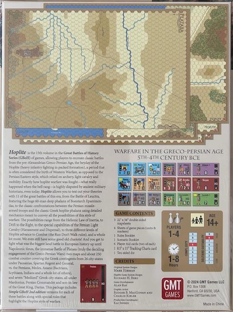 Hoplite, el decimoquinto volumen de la serie de juegos Grandes Batallas de la Historia, permite a los jugadores recrear batallas clásicas de la época persa-helenística prealejandrina, el apogeo del hoplita (infantería pesada que luchaba en formación compacta). Este período se considera a menudo el nacimiento de la guerra occidental, a diferencia del estilo persa/oriental, que se basaba en el tiro con arco, la caballería ligera y la movilidad.
