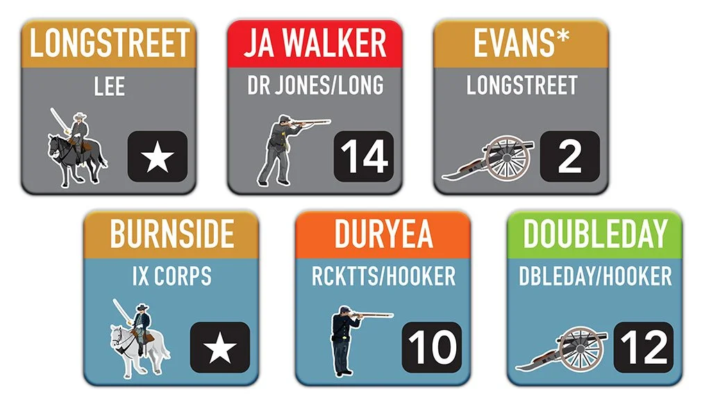 Basadas en una investigación exhaustiva del orden de batalla, los contadores reflejan con precisión los ejércitos del Norte y del Sur.
