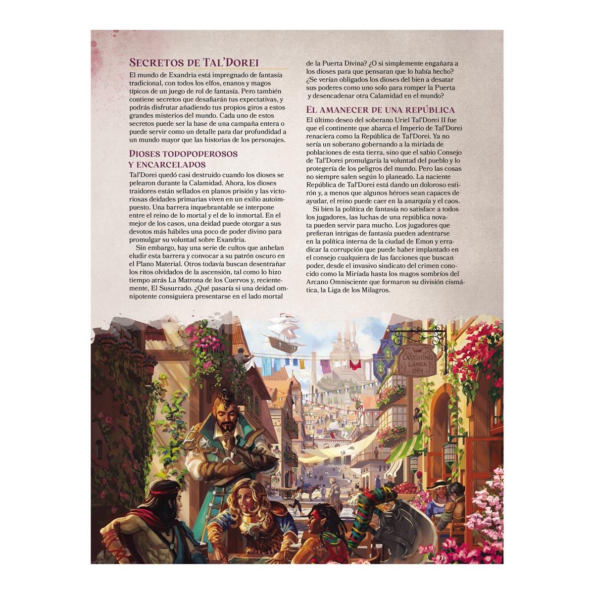 Os damos la bienvenida a Tal'Dorei, un continente lleno de fantasía, que rebosa historias grandiosas de héroes y aventuras, y que espera con ganas tus épicas gestas. Vuela en un barco aéreo desde una metrópolis como Emon hasta el remanso distante que es Piedrablanca, aventúrate en tierras salvajes plagadas de terribles monstruos y magos caprichosos, y descubre objetos mágicos que van desde simples baratijas hasta los legendarios Vestigios de Divergencia.