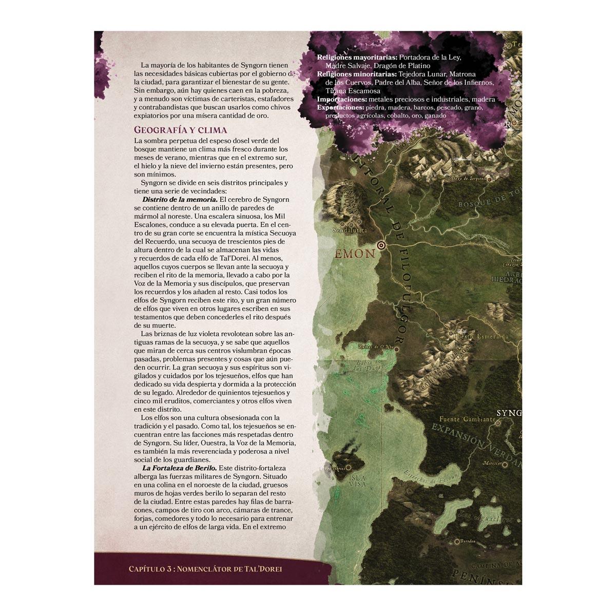 - Guía de cada una de las principales regiones, con semillas de aventura para alimentar tu campaña.
