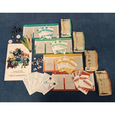 Batallón - Guerra en la Antigüedad es un juego sencillo para 2 o 4 jugadores de la editorial OSPREY. Elige una de las 4 facciones históricas, para dirigir su amplia gama de unidades, cada una con sus propios puntos fuertes y debilidades. Utiliza las cartas de tácticas específicas de cada facción para superar a tus oponentes. Crea tus ejércitos con sabiduría. Controla el ritmo de la batalla con precisión y consigue la victoria para tu pueblo.