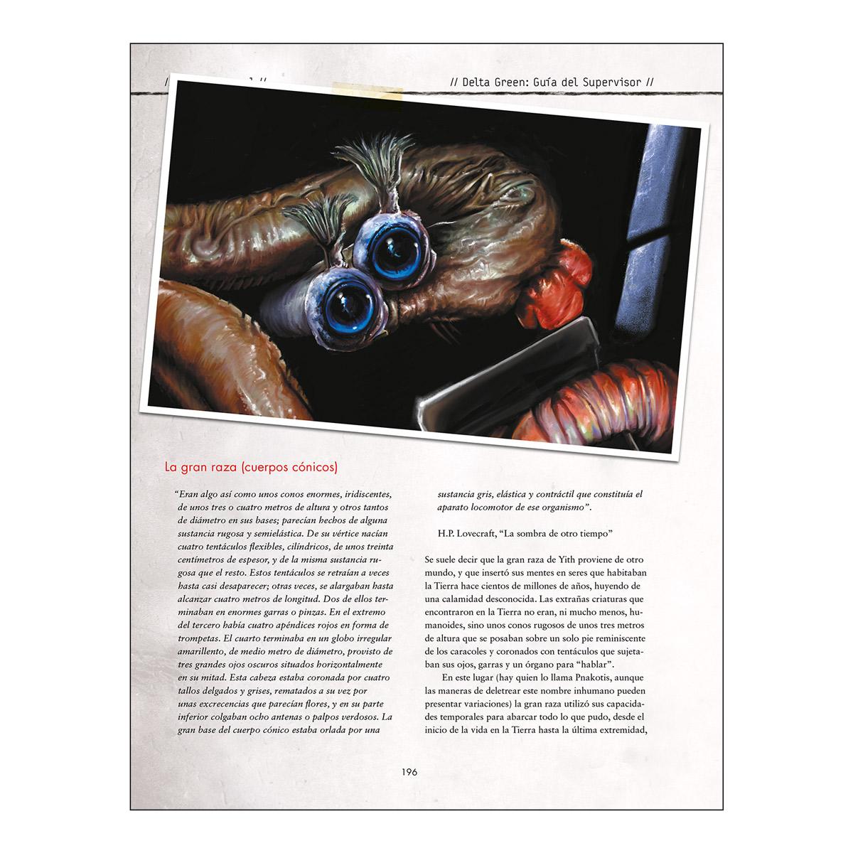 - Una historia del mundo de Delta Green, desde los tiempos prehumanos hasta la actualidad, con consejos para campañas y semillas para crear escenarios en cada página.