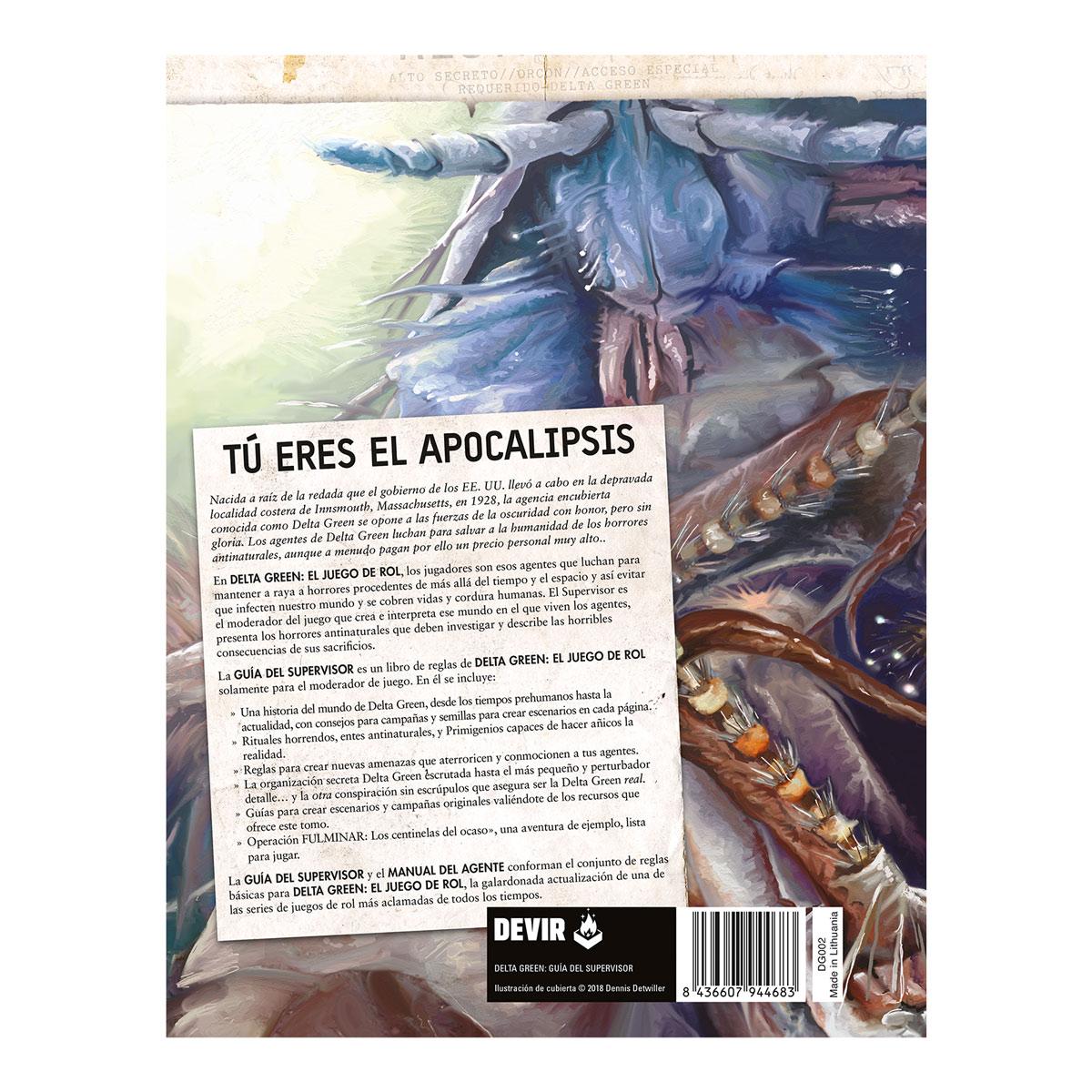 La GUÍA DEL SUPERVISOR es un libro de reglas de DELTA GREEN: EL JUEGO DE ROL solamente para el moderador de juego. En él se incluye:
