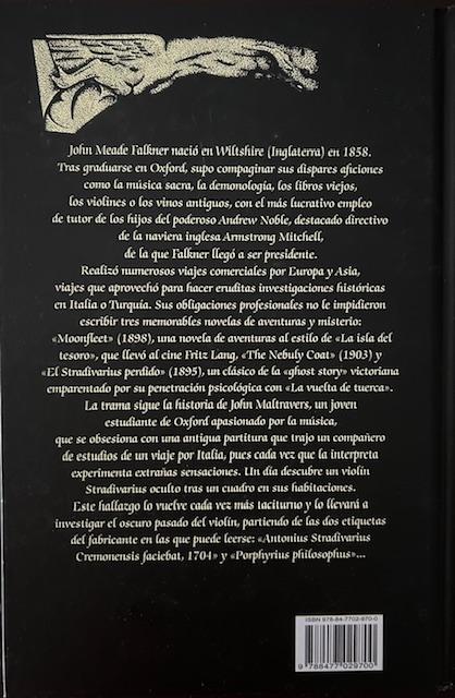 John Meade Falkner nació en Wiltshire (Inglaterra) en 1858. Tras graduarse en Oxford, supo compaginar sus dispares aficiones como la música sacra, la demonología, los libros viejos, los violines o los vinos antiguos, con el más lucrativo empleo de tutor de los hijos del poderoso Andrew Noble, destacado directivo de la naviera inglesa Armstrong Mitchell, de la que Falkner llegó a ser presidente.