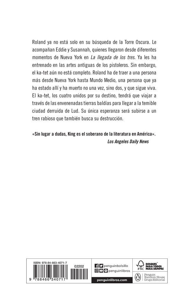 El ka-tet, los cuatro unidos por su destino, tendrá que viajar a través de las envenenadas tierras baldías para llegar a la temible ciudad derruida de Lud. Su única esperanza será subirse a un tren rabioso que también busca su destrucción.