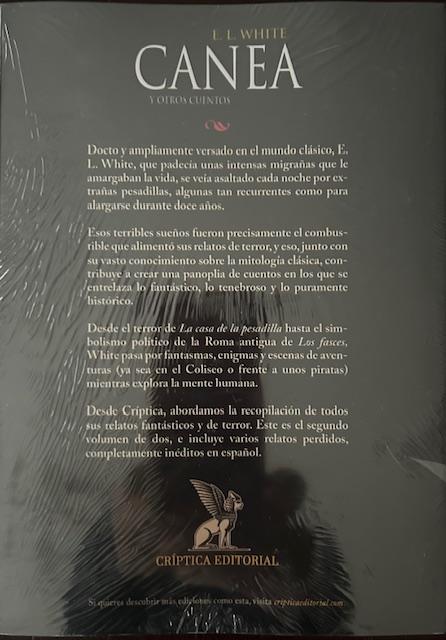 Docto y ampliamente versado en el mundo clásico, E. L. White se veía asaltado cada noche por extrañas pesadillas que fueron el combustible que alimentó sus relatos de terror. Desde Críptica, abordamos la recopilación de todos sus relatos fantásticos y de terror. Este es el segundo volumen de dos.