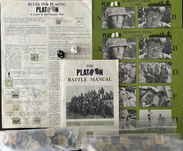 Platoon es un wargame de iniciación sobre combates de pequeños escuadrones en Vietnam. Es similar a los juegos de la serie Smithsonian de Avalon Hill: una hoja con las reglas básicas y un folleto con reglas avanzadas, escenarios adicionales e información histórica. El sistema de combate también es similar al de otros juegos de la serie Smithsonian.