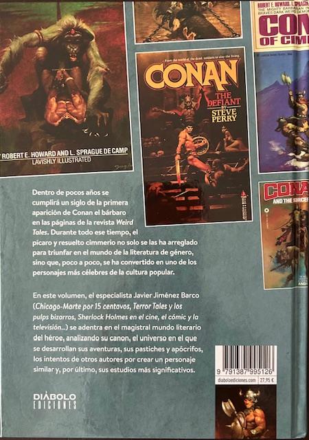 Dentro de pocos años se cumplirá un siglo de la primera aparición de Conan el bárbaro en las páginas de la revista Weird Tales. Durante todo ese tiempo, el pícaro y resuelto cimmerio no solo se las ha arreglado para triunfar en el mundo de la literatura de género, sino que, poco a poco, se ha convertido en uno de los personajes más célebres de la cultura popular. En este volumen, el especialista Javier Jiménez Barco (Chicago-Marte por 15 centavos, Terror Tales y los pulps bizarros, Sherlock Holmes en el cine, el cómic y la televisión...) se adentra en el magistral mundo literario del héroe, analizando su canon, el universo en el que se desarrollan sus aventuras, sus pastiches y apócrifos, los intentos de otros autores por crear un personaje similar y, por último, sus estudios más significativos.