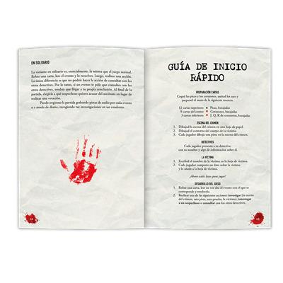 La secuencia de juego consiste en: crear a vuestros detectives; decidir dónde tuvo lugar el asesinato, dibujar un boceto de la escena del crimen y el contorno del cuerpo de la víctima donde fue hallado; detallar lo que sabéis de esta y describir las primeras pistas, una por jugador; preparar el mazo de eventos, y... ¡ya está!, todo listo para comenzar. Por turnos, iréis desvelando cartas del mazo que se corresponden con eventos: 12 para la noche del crimen y otras 12 para la mañana siguiente, un total de 24 cartas para 24 horas de investigación. Tendréis que dar respuesta a los eventos y realizar acciones de juego: investigar, interrogar a un sospechoso o consultar al resto de detectives. Todos juntos, descubriréis pistas, recopilaréis pruebas y encontraréis sospechosos a los que interrogar. Cuando llegue el final de la partida, tendréis suficiente información para acusar a uno de los sospechosos.
