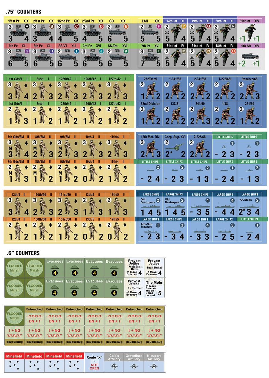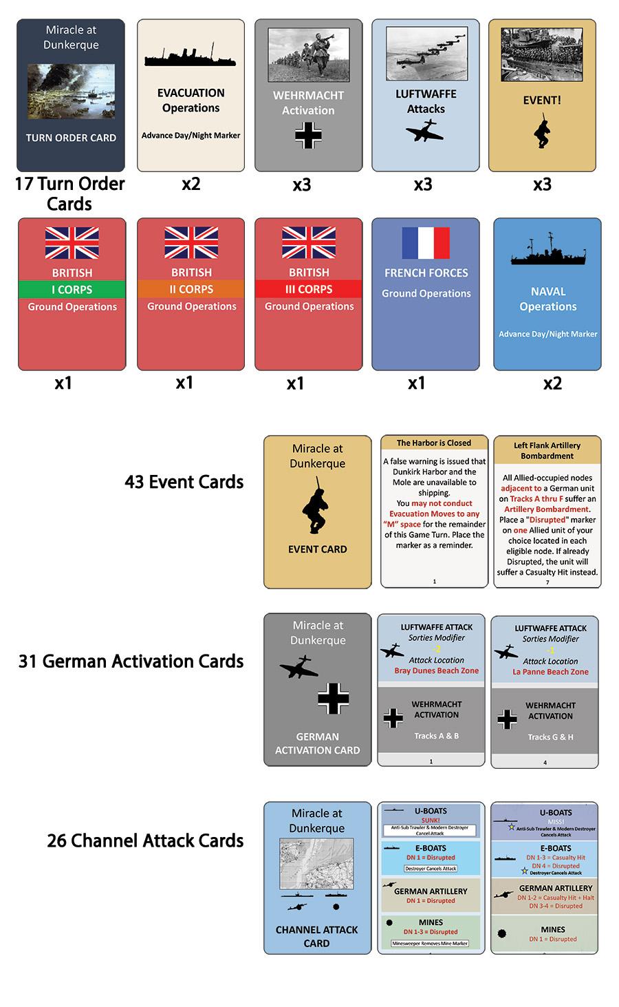 (17 Turn Order, 43 Event, 26 Channel Attacks, 31 German Activation)