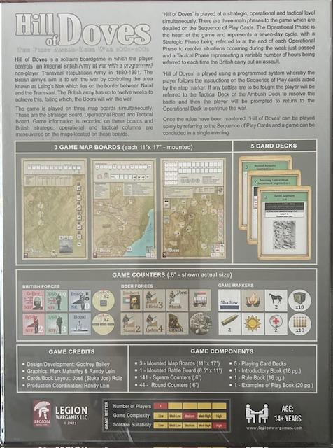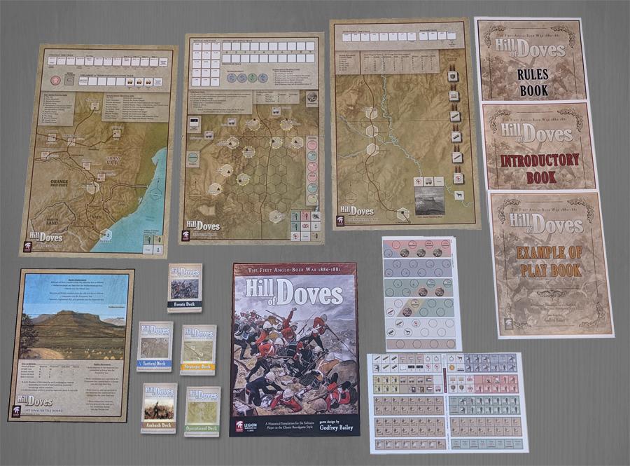 «Hill of Doves» ("La Colina de las Palomas") es un juego de mesa para un solo jugador en el que el jugador controla al Ejército Imperial Británico en guerra contra un ejército republicano del Transvaal (controlado por un programa) en 1881. El objetivo del ejército británico es ganar la guerra controlando la zona conocida como Laing's Nek, situada en la frontera entre Natal y el Transvaal. El ejército británico dispone de hasta doce semanas para lograrlo; de lo contrario, los bóers ganarán la guerra.