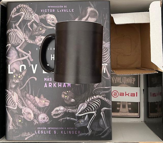 Pack exclusivo y agotado de ediciones anotadas H. P. Lovecraft del experto Leslie S. Klinger. Incluye taza magic con diseño exclusivo en negro y juego de 24 cartas con ilustraciones originales. Con los libros "H. P. Lovecraft Anotado" prologado por Alan Moore y "Más Allá de Arkham".