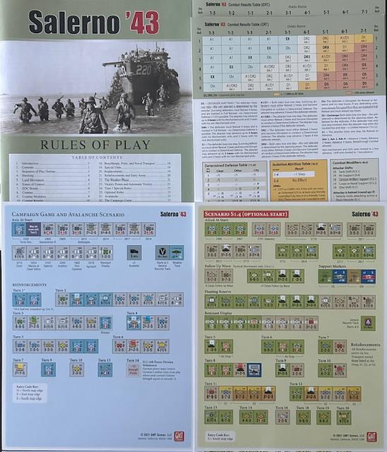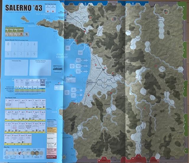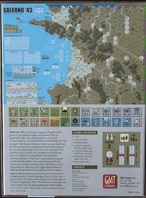 Salerno '43 utiliza exactamente el mismo mapa, unidad y escalas de tiempo que Normandía '44 , lo que proporciona una excelente manera de comparar estas dos invasiones. Salerno '43 utiliza el sistema de juego de Normandy '44 modificado. Con un tamaño más pequeño, el juego es más fácil de aprender y jugar que su predecesor.