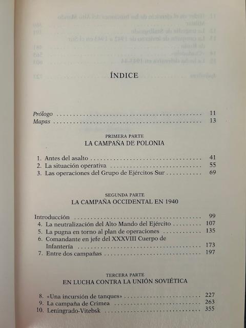 La narración, muy completa, se va a detener por un lado en los hechos históricos en los que intervinieron las tropas bajo su mando, con descripción de órdenes de batalla, relaciones de fuerzas y acciones de guerra. Pero también va a tratar muy a menudo sobre la participación directa del autor en los hechos: sus puntos de vista, sus concepciones del mando, análisis personales de las situaciones operativas y estratégicas en las que se vio envuelto, conferencias con Hitler y anécdotas varias .
