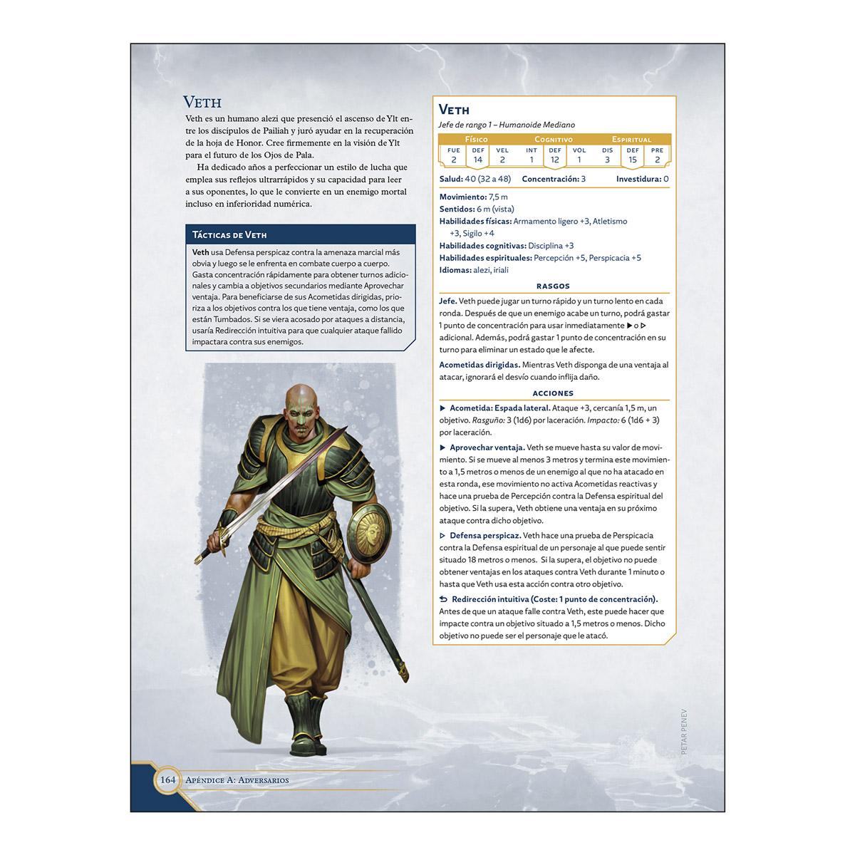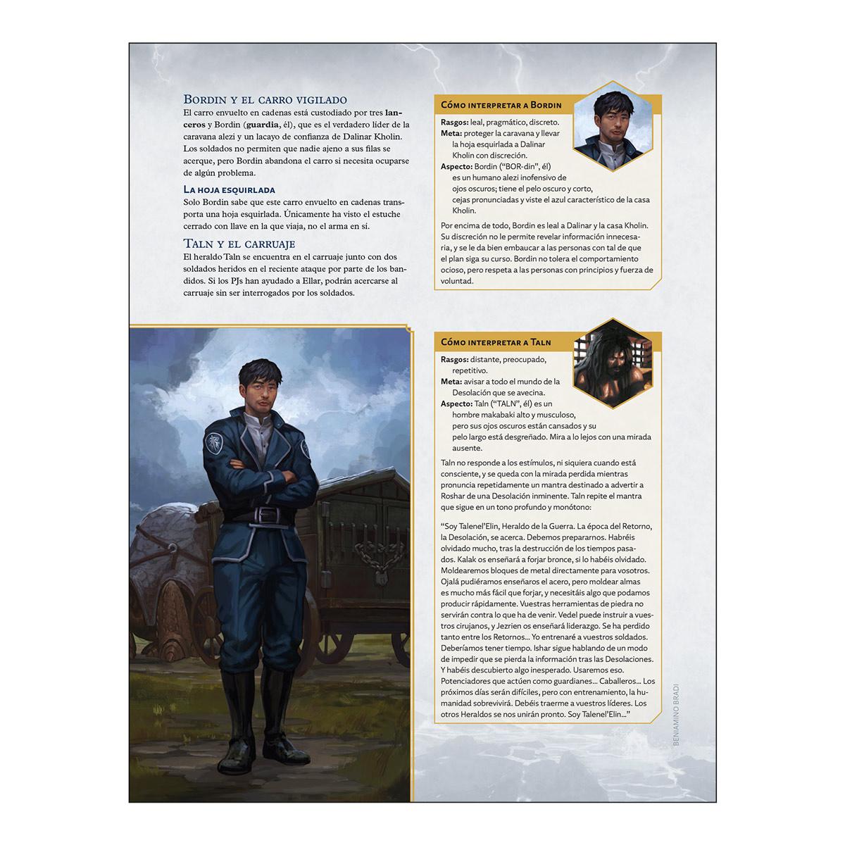 Esta campaña para el juego de rol de Cosmere® llevará a los personajes desde nivel 1 a nivel 8. A lo largo del camino, los personajes deberán buscar a Heraldos caídos, sobrevivir a la tormenta eterna y elegir si harán sus juramentos Radiantes. Creada junto a Brandon Sanderson y Dan Wells, la historia de Caminapiedras™ revela nuevos secretos sobre la ambientación de El Archivo de las Tormentas™.