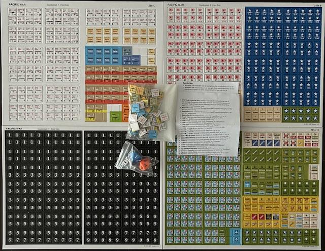 PACIFIC WAR también es una máquina del tiempo que te lleva a los tiempos dorados de los "monster games". Sin embargo, a pesar de lo que hayas oído, PACIFIC WAR NO es un "monster game", sino un sistema de juego aéreo-terrestre-marítimo operativo de la Segunda Guerra Mundial que te permite luchar en TODAS las batallas y campañas importantes del Pacífico. El juego original incluía 21 escenarios. Esta nueva edición añade al menos media docena más. El juego se ganó su reputación de "monster game" porque, para librar todas estas campañas, necesitas una gran cantidad de fichas (más de 2000) que representan a buques insignia, divisiones de cruceros, escuadrones de destructores, grupos de aeronaves y unidades terrestres, desde batallones hasta divisiones y cuerpos de ejército, con cada unidad clasificada individualmente según su rendimiento histórico.