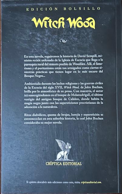 Este libro presenta por primera vez en español la novela Witch Wood, del autor de terror escocés John Buchan. En palabras del propio Lovecraft: