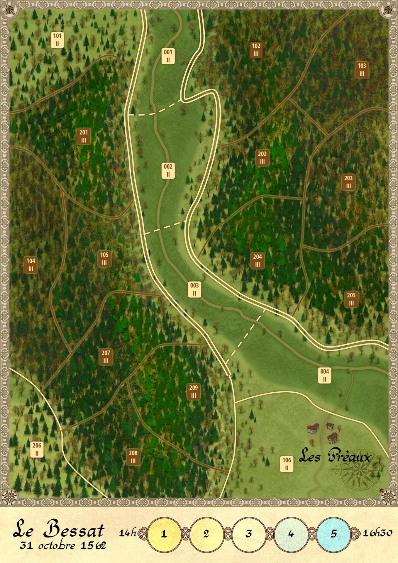 LE BESSAT, 31 de octubre de 1562; un escenario de introducción con pocas fichas para descubrir las reglas.