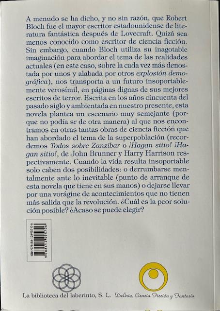 A menudo se ha dicho, y no sin razón, que Robert Bloch fue el mayor escritor estadounidense de literatura fantástica después de Lovecraft. Quizá sea menos conocido como escritor de ciencia ficción. Sin embargo, cuando Bloch utiliza su inagotable imaginación para abordar el tema de las realidades actuales (en este caso, sobre la cada vez más denostada por unos y alabada por otros explosión demográfica), nos transporta a un futuro insoportablemente verosímil, en páginas dignas de sus mejores escritos de terror.