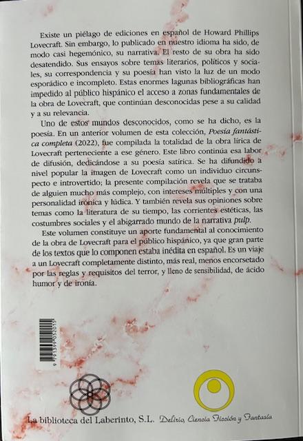 Existe un piélago de ediciones en español de Howard Phillips Lovecraft. Sin embargo, lo publicado en nuestro idioma ha sido, de modo casi hegemónico, su narrativa. El resto de su obra ha sido desatendido. Sus ensayos sobre temas literarios, políticos y sociales, su correspondencia y su poesía han visto la luz de un modo esporádico e incompleto. Estas enormes lagunas bibliográficas han impedido al público hispánico el acceso a zonas fundamentales de la obra de Lovecraft, que continúan desconocidas pese a su calidad y a su relevancia.