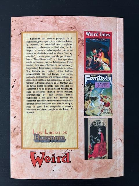 Siguiendo con nuestro proyecto de ir publicando, poco a poco, toda la obra de Robert E. Howard, en recopilaciones completas, ordenadas, coherentes e ilustradas, le ha llegado el turno a todas aquellas piezas de aventuras y fantasía históricas: desde "Lanza y colmillo", primera pieza vendida por Howard, hasta "Nekht-Smerkhet", la pieza que dejó (casi) inconclusa por su fallecimiento. Entre medias, toda una colección de narraciones (y fragmentos) fascinantes, incluyendo la mítica "La Sombra del Buitre", única historia protagonizada por Red Sonya, y el canon completo (incluyendo una sinopsis inédita) de Agnes de Chastillon, La Espadachina. Se incluye también la trilogía completa De Montour, una de cuyas piezas resultaba casi imposible de encontrar. Y no es el único inédito howardiano, pues el presente volumen ofrece inéditos, acompañados de otras piezas apenas publicadas y de otras más sencillas de encontrar. Todo ello en un volumen coherente y generosamente ilustrado, uno más de los que, poco a poco, irán componiendo nuestra colección de obras completas de Robert E. Howard.