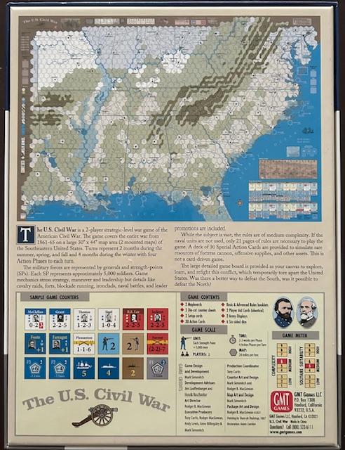 The U.S. Civil War es un juego de guerra a nivel estratégico para 2 jugadores de la Guerra Civil en EEUU. Un bando controla el Norte (la Unión), el otro el Sur (la Confederación). El Sur intenta defender su nación y acabar con la voluntad del Norte de continuar la guerra; el Norte intenta aplacar la rebelión. El juego cubre toda la guerra desde 1861 hasta 1865 en un gran área de mapa de 30” x 44” (2 mapas montados) del sureste de los Estados Unidos.