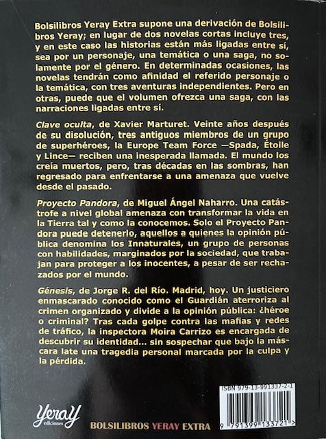 Génesis, de Jorge R. del Río. Madrid, hoy. Un justiciero enmascarado conocido como El Guardián aterroriza al crimen organizado y divide a la opinión pública: ¿héroe o criminal? Tras cada golpe contra las mafias y redes de tráfico, la inspectora Moira Carrizo es encargada de descubrir su identidad… sin sospechar que bajo la máscara late una tragedia personal marcada por la culpa y la pérdida.