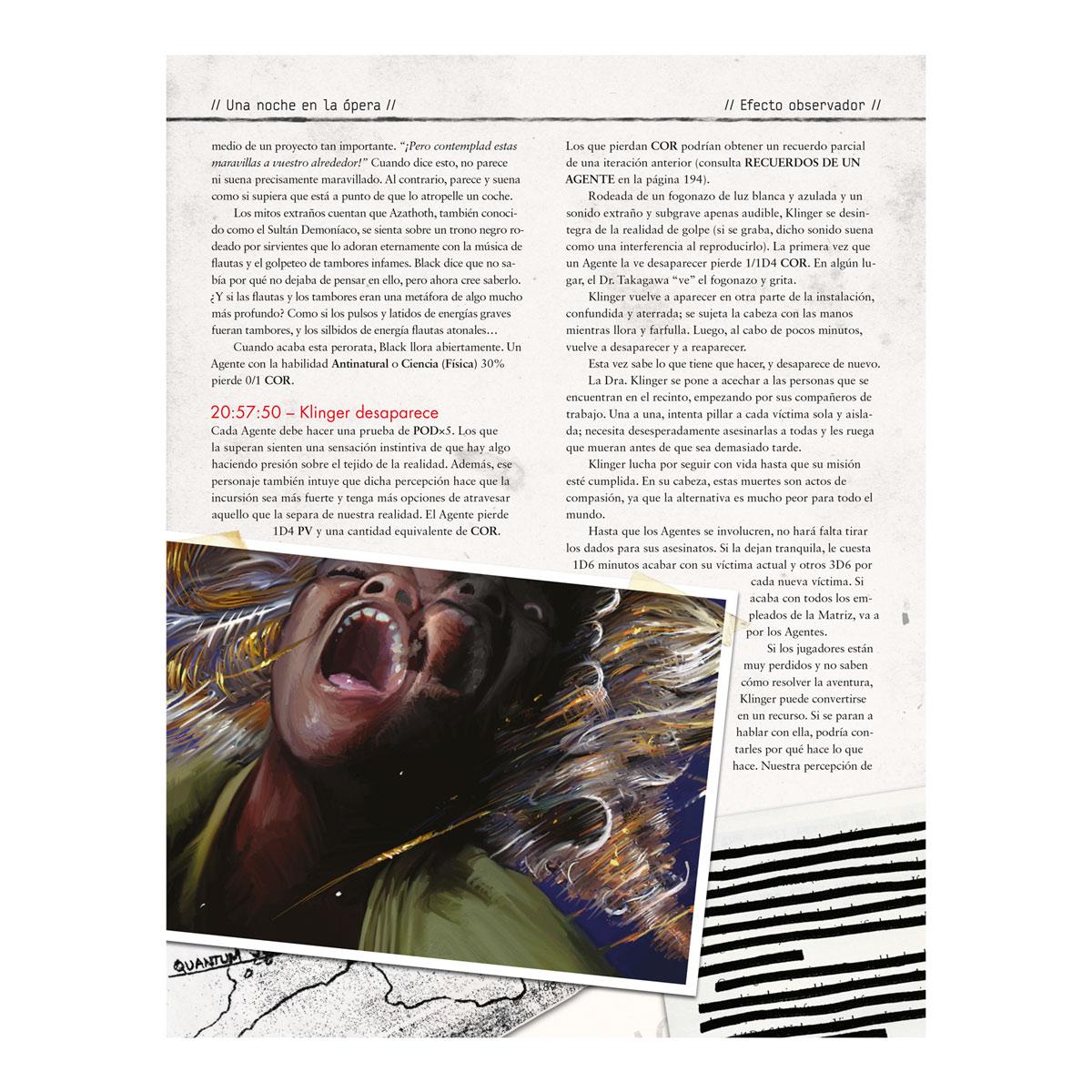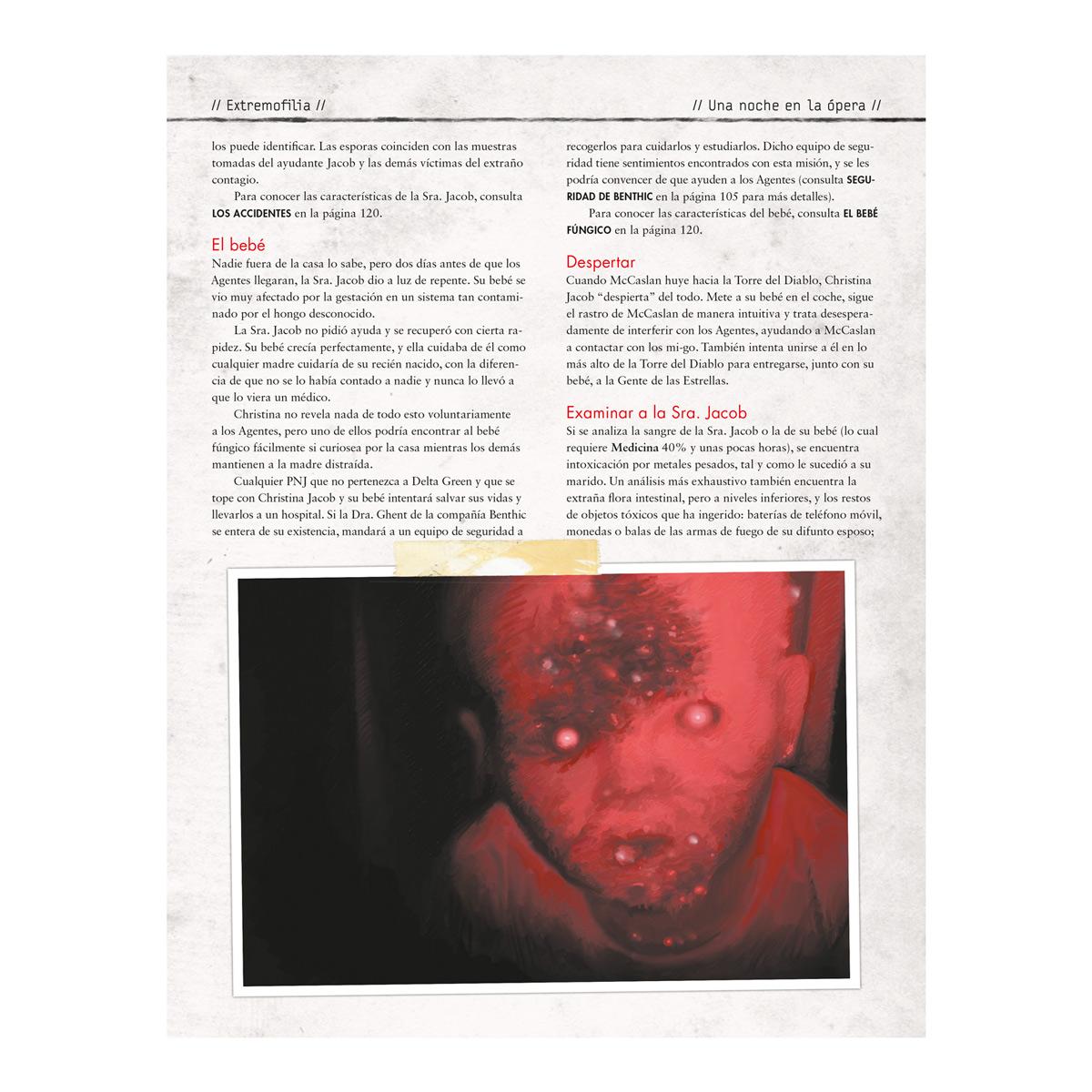 UNA NOCHE EN LA ÓPERA recopila seis operaciones de Delta Green (o “Noches en la Ópera”, que es como los agentes a veces se refieren a ellas). Cada uno de estos escenarios se sostiene por sí solo como un momento de terror.