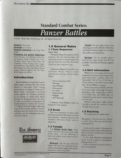 Un reglamento específico de Panzer Battles de 12 páginas.