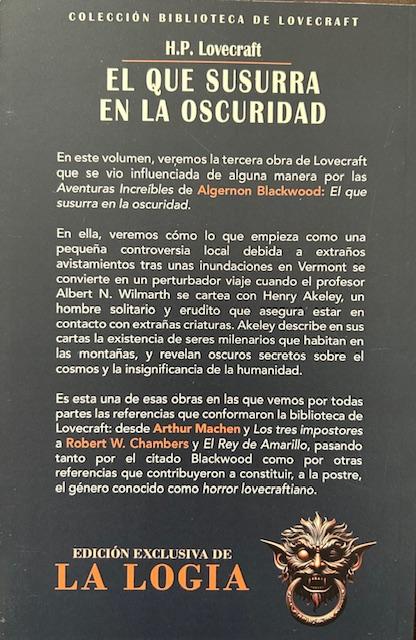 En este volumen veremos la tercera obra de Lovecraft que se vio influenciada de alguna manera por las "Aventuras Increibles" de Algernon Blackwood: "El que susurra en la oscuridad".