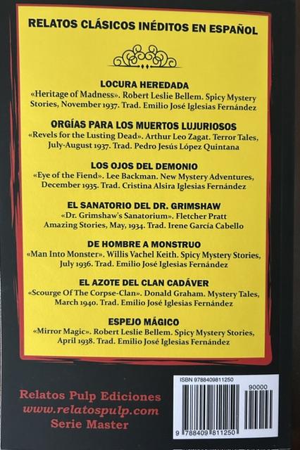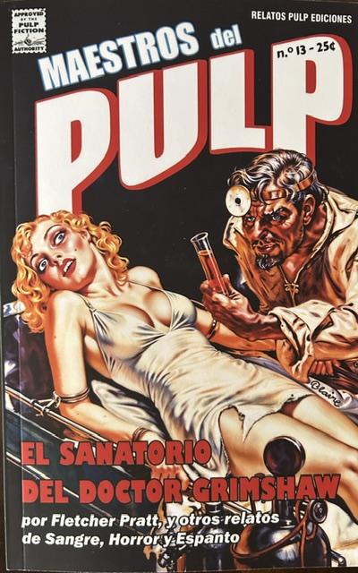 El resto de relatos ―si bien no todos―, en su mayoría pivotan en torno a la mítica figura del mad doctor, pero no el de laboratorio fantástico, sino el de horror y tortura, siguiendo más o menos la línea que habíamos marcado en el número 7 de nuestra colección. Se podría decir que tanto dicho número como este, el 13, son hermanos gemelos. Aquí, uno de los relatos más interesantes es el firmado por Flechet Pratt, un autor que descubrí cuando publicamos, en el número 4, «El ciclo del pulpo». Tan grata fue la impresión que me había dejado que ahora hemos vuelto con él. Su relato, «El sanatorio del doctor Grimshaw», es una interesante narración sobre experimentos macabros, publicada originalmente en Amazing Stories. Obviamente, dada la línea editorial de esa revista, aquí tendremos más pseudociencia que gore.
