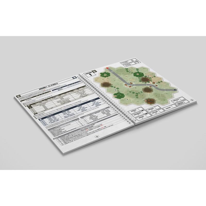 Este libro es un juego de guerra solitario de tipo hexadecimal y fichas. Juegas y el enemigo es controlado por el mismo libro de juego (la Inteligencia Artificial o IA). Necesitarás traer al menos 5, preferiblemente 7, dados estándar de seis caras. Se incluyen mapas de misión a todo color, así como fichas que se pueden recortar o fotocopiar.