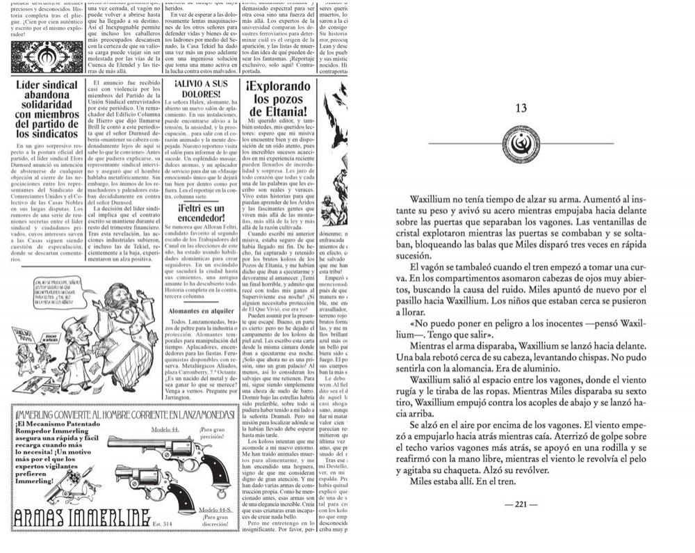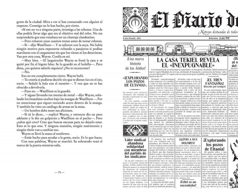 Han transcurrido trescientos años desde los acontecimientos de la Trilogía Mistborn. Kelsier y Vin han pasado a formar parte de la historia y la mitología, y el mundo de Scadrial se halla a las puertas de la modernidad. En las tierras fronterizas conocidas como los Áridos, las antiguas magias son una herramienta crucial para quienes defienden el orden y la justicia. Uno de esos vigilantes de la ley es Waxillium Ladrian, un excepcional nacidoble capaz de empujar metales con su alomancia y utilizar la feruquimia para volverse más ligero o pesado a voluntad. Tras veinte años en los Áridos, una tragedia hace que Wax regrese a la metrópolis de Elendel. Allí tendrá que renunciar a sus pistolas y asumir sus obligaciones como líder de una casa noble. Pero cuando una banda de alomantes comienza a asaltar trenes y secuestrar a personas, Wax tardará poco en descubrir que las mansiones y las elegantes avenidas arboladas de la ciudad pueden ser más peligrosas que las arenosas llanuras de los Áridos.